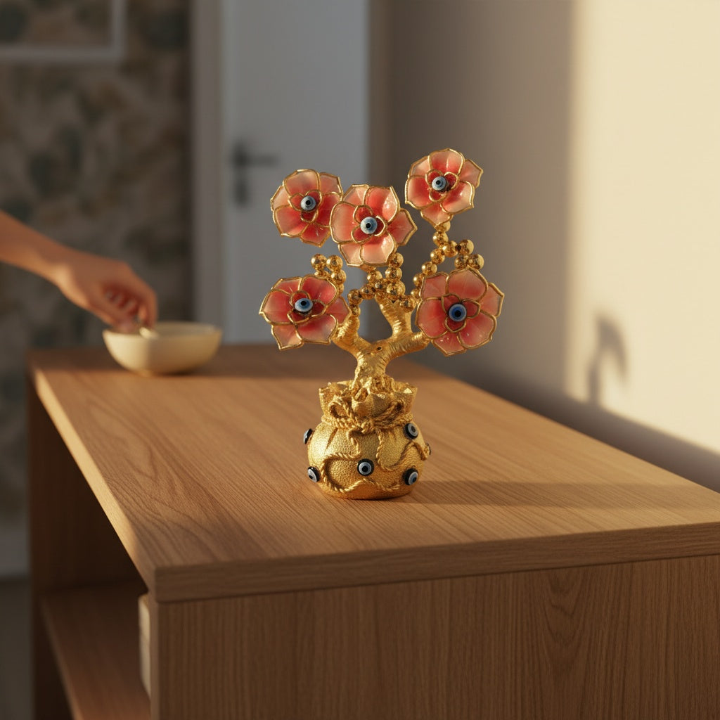 The Flair Store™ Evil Eye Flowers Tree with Money Bag, Fengshui for Positive Energy, Najar Suraksha for Vaastu, Love Prosperity, Peace